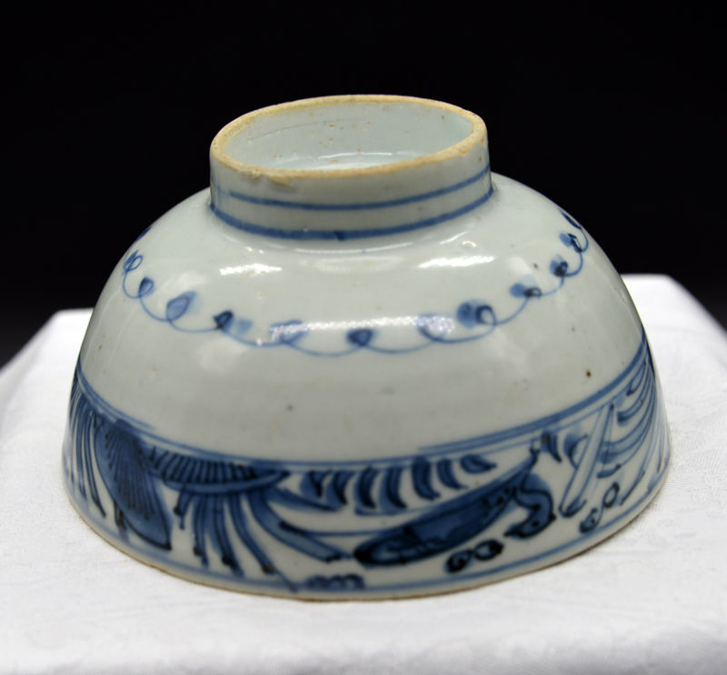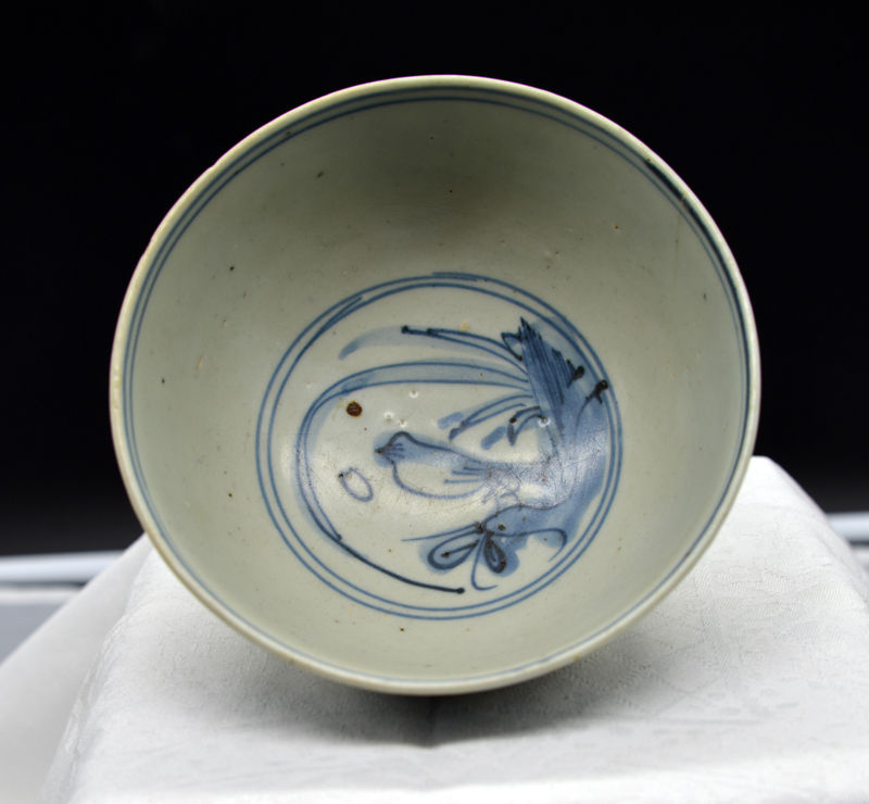 Ming Porzellan Schale, D : 12,2 cm, H : 6,4 cm, Fuß D: 5,0 cm, angeblich aus Gräbersammlung in Sulawesi 1998