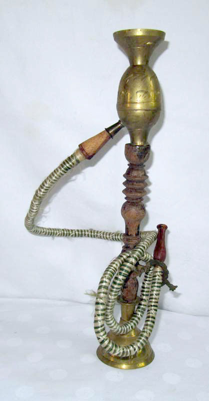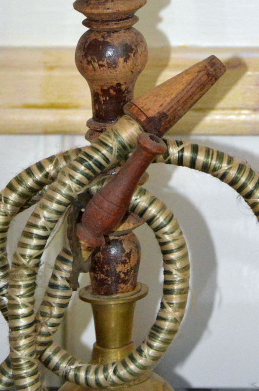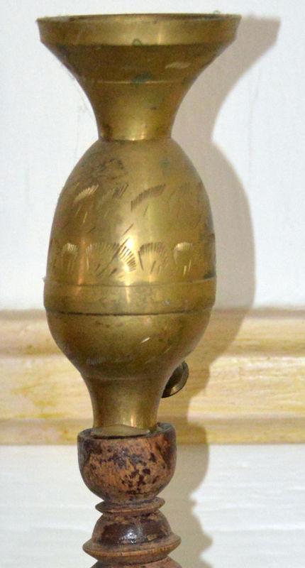 Wasserpfeife, Holz Messing, Jemen, Mitte 20. Jahrh., H : 38 D : 7 cm