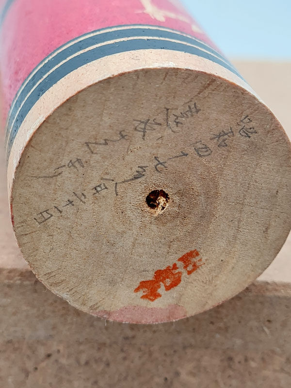 Kokeshi, Doll, japanisches Spielzeug welches ein Mädchen darstellt, aus Obstbaumholz, bemalt, am Boden signiert, H : 18 cm D : 6 cm