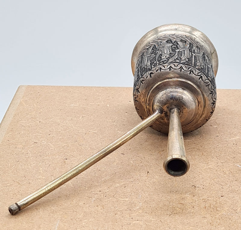 Kleine orientalische Wasserpfeife, graviertes Dekor, Persien Isfahan, 12 x 10 x 4,5 cm