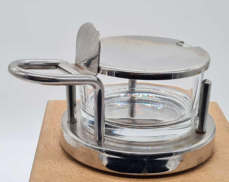 Alessi, Ettore Sottsass, Käsedose, Edelstahl, Glas, H : 10 cm D : 11 cm